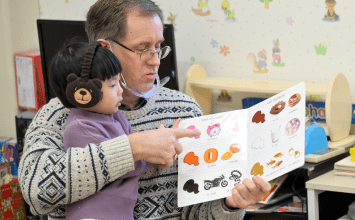 英会話スクールで、昼間は子供、夜は大人のレッスンをしています。幼稚園と小学1年生の2人を通わせていますが、どちらもアゴラが楽しいようで、特に幼稚園・年中の娘は英語の歌を歌ったり、短い英語の本を読んだり、書いたり・・・。